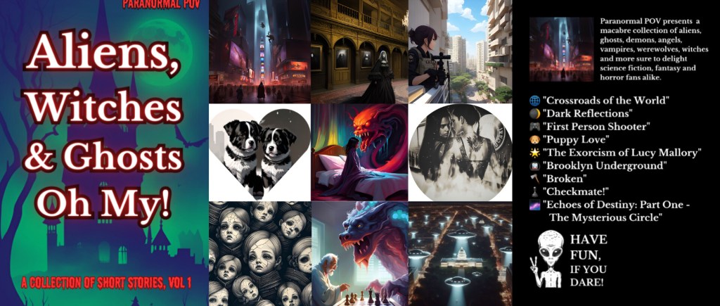 Prepare to be entranced by “Paranormal POV presents: Aliens, Witches, & Ghosts, Oh My!” – an enchanting compilation of short stories that will transport you to the captivating crossroads of the supernatural and the unknown. Dive into a realm where the ordinary collides head-on with the extraordinary, and where the unexplained transforms into the thrillingly suspenseful action and adventure.